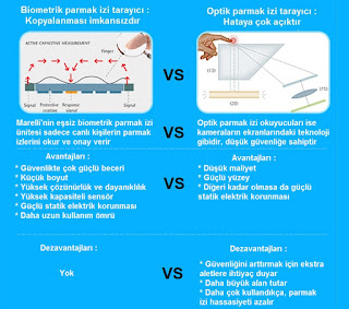 Parmak izi ünitesi : Zaten işin kalbi burada. Bu ünite dandik olduğu zaman at çöpe gitsin. Marelli de bu yüzden en çok parayı bu kısma harcamış. Yani niye daha ucuza mal olmadığı meselesi burada yatıyor. Parmak izi ünitesi İsviçre’den Dünyanın en ünlü ve büyük parmak izi üreticisinden geliyor. Türkiye’de bu üniteyi kullanan bir marka yok. Sadece şunu söyleyeyim parmak izi ünitesi 10.000.000 kez kullanım testini geçmiş bir ürün. Yani bozulma ihtimali çok çok çok zor diyeyim.